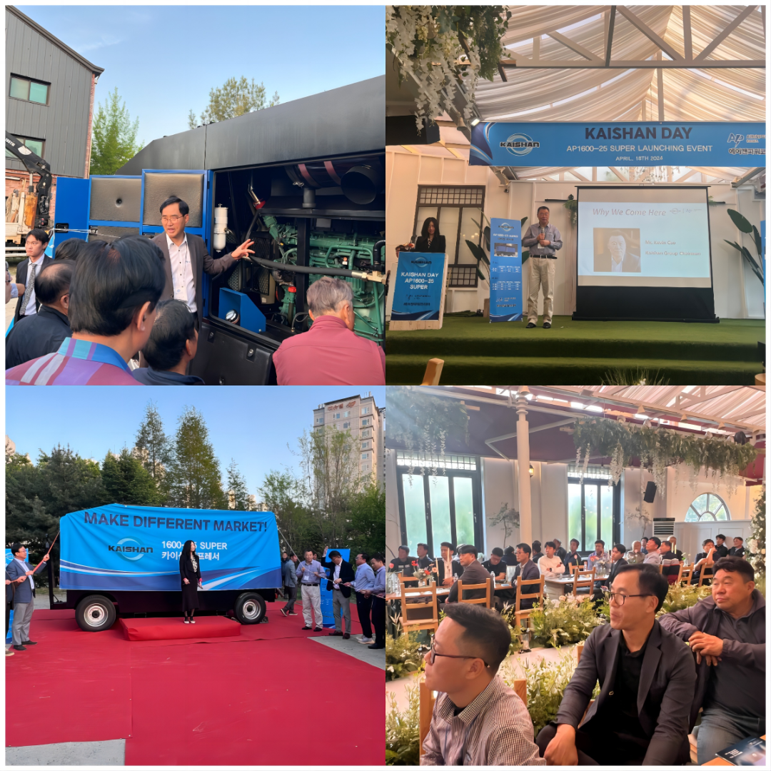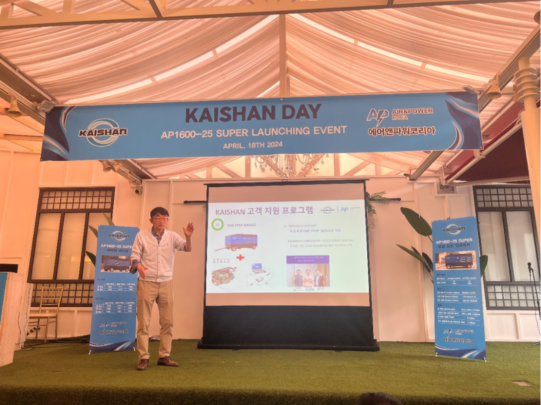 4月18日,韓國(guó)代理商伙伴AIR&POWER公司在韓國(guó)京畿道龍仁市舉辦“開山日”活動(dòng),曹克堅(jiān)董事長(zhǎng)攜開山集團(tuán)市場(chǎng)部總經(jīng)理李蘅、質(zhì)量總監(jiān)施勇、亞太銷售公司總裁葉宗浩、銷售總監(jiān)于紹文以及工程設(shè)計(jì)人員參加了活動(dòng)。舉辦這次活動(dòng)旨在進(jìn)一步開拓韓國(guó)壓縮機(jī)市場(chǎng),布局韓國(guó)工程機(jī)械市場(chǎng)。