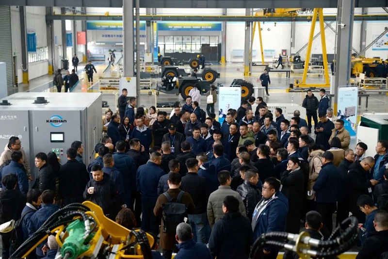 會(huì)議還安排與會(huì)者前往開山重工宜昌工廠實(shí)地考察,在嶄新的廠房?jī)?nèi),一臺(tái)安靜運(yùn)行著的250kW、8bar排氣壓力的磁懸浮四級(jí)壓縮離心空氣壓縮機(jī)成為明星產(chǎn)品,出色的表現(xiàn)得到了參觀者極高的評(píng)價(jià)。開山還展示了鋰電池新能源移動(dòng)空氣壓縮機(jī)、應(yīng)用于海外高端工程市場(chǎng)的全新設(shè)計(jì)柴油引擎螺桿空氣壓縮機(jī)、變節(jié)距干式真空泵以及智能鑿巖機(jī)器人等產(chǎn)品。大家對(duì)開山的創(chuàng)新能力和領(lǐng)先的高新技術(shù)產(chǎn)品贊不絕口。
