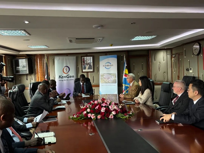 10月27日上午9時,肯尼亞共和國能源部。開山集團股份有限公司董事總經(jīng)理湯炎博士與KenGen總經(jīng)理兼CEO Eng,Peter Njenga分別代表各自公司簽署了《蒸汽供應協(xié)議》??夏醽喒埠蛧茉床块LHon,J.Opiyo Wandayi,EGH出席了簽字儀式。